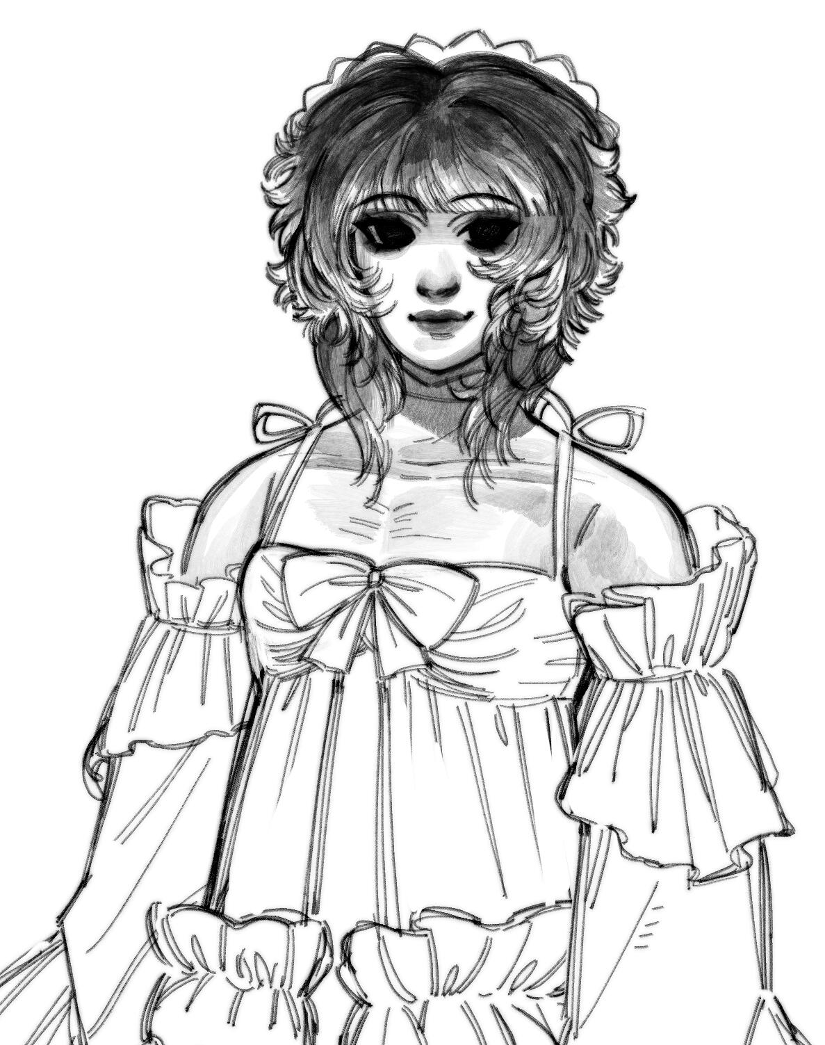..Maggie? Nosy, annoyin', somethin' of a pest.. but probably the closest thing I got to a siblin' now-a-days. I'm not sure when I started gettin' a sweet spot for her, but I make sure all the shit she gives me is polished and displayed somewhere on a shelf. Only really noticed when folk comin' over started to say, "..Is that a bone?" or, "Is.. that a glass eyeball?" or, "..Hey, why'd you got teeth over there?" Really kills the mood sometime, but worth it for her.